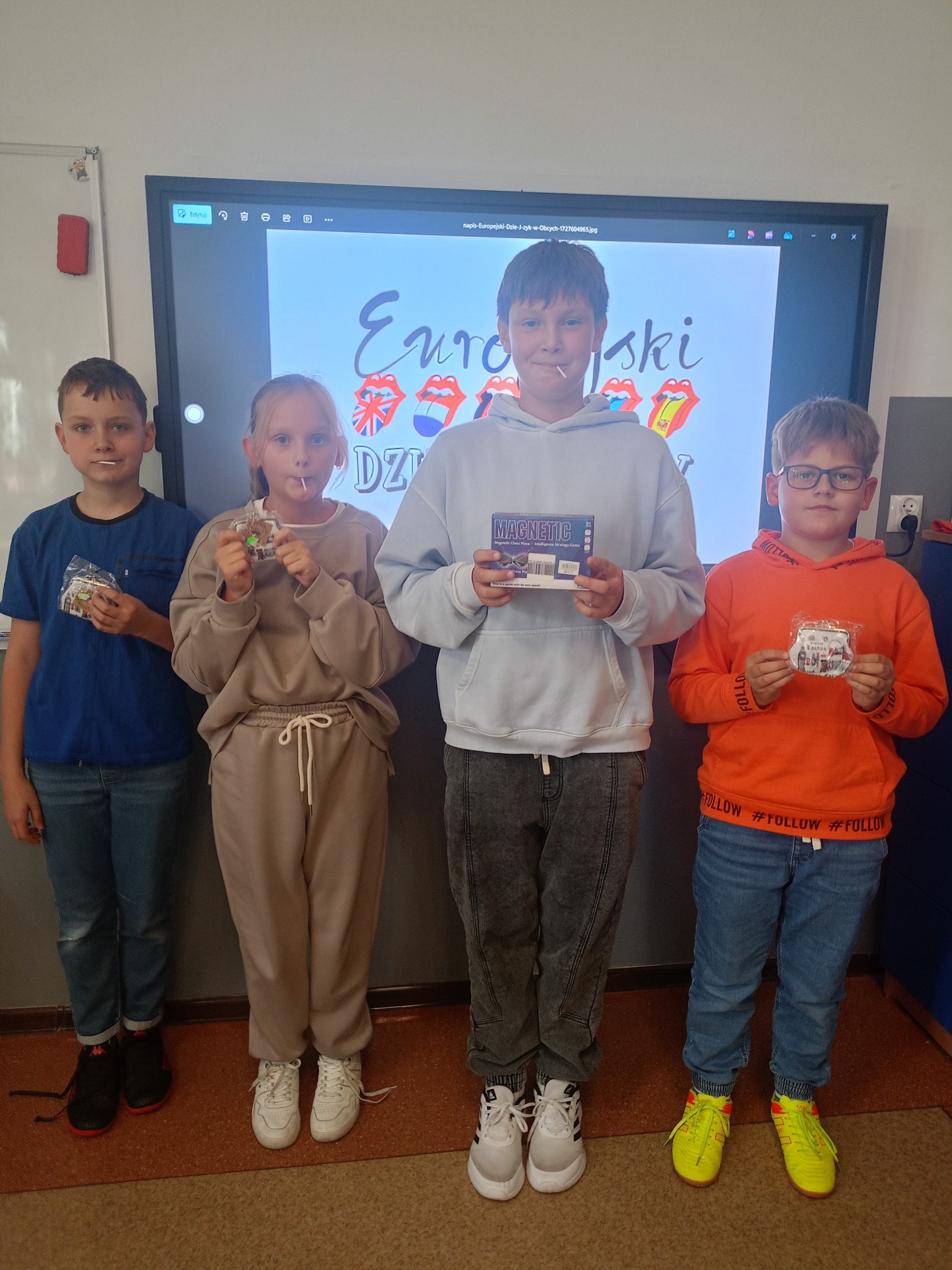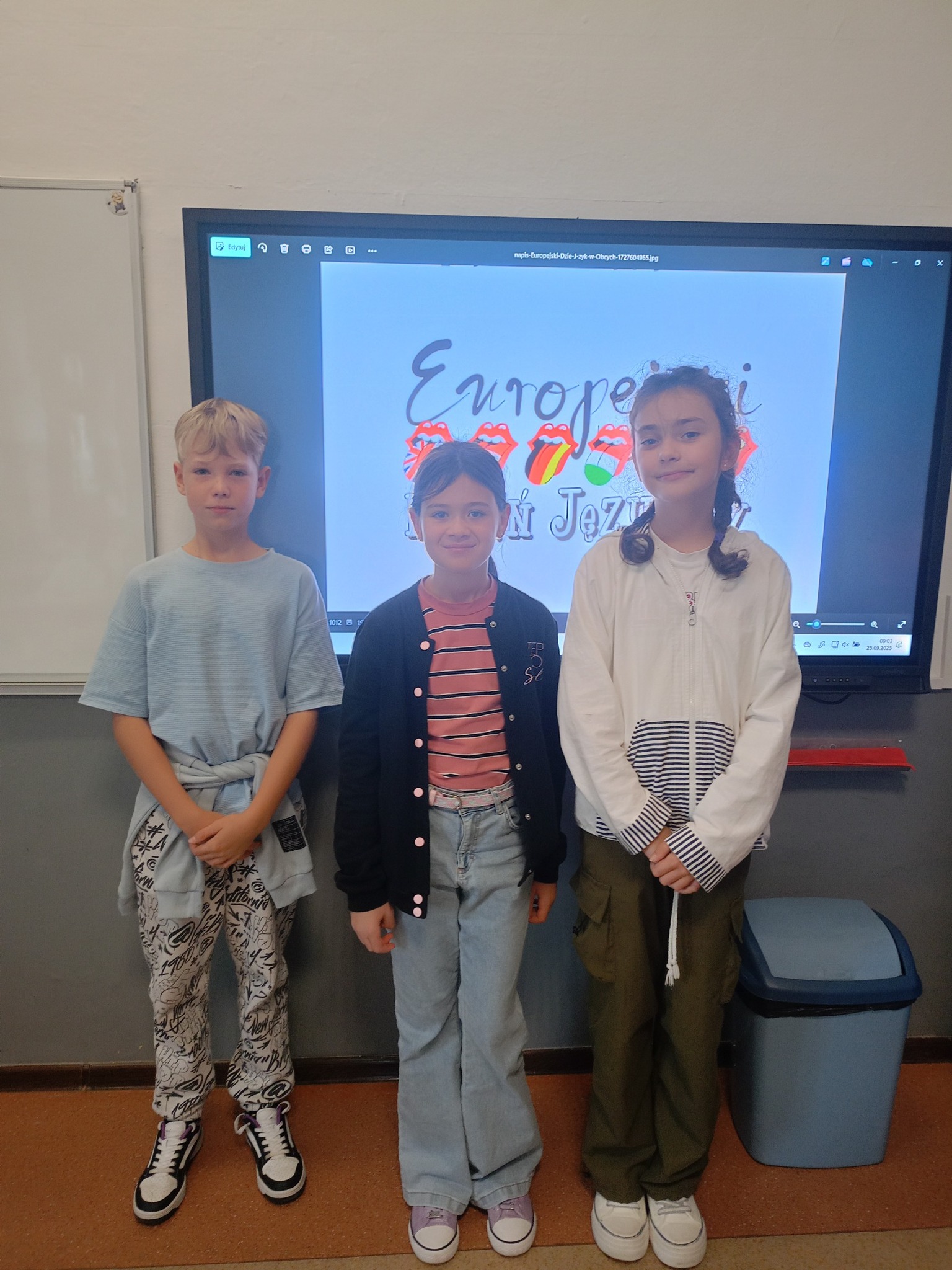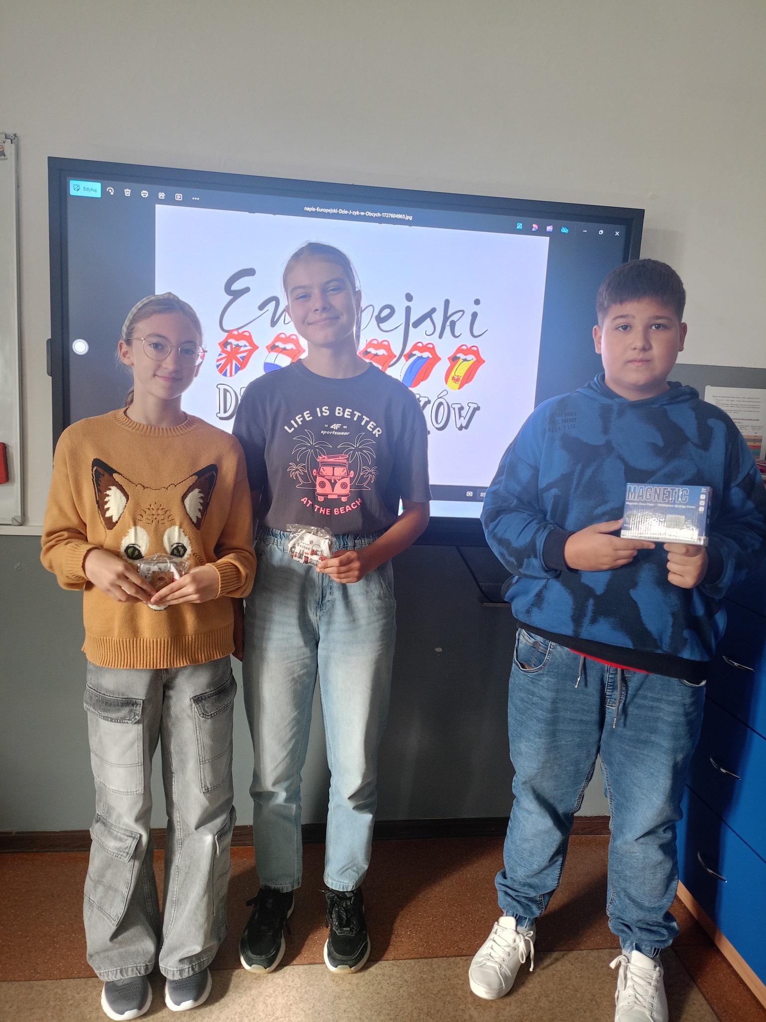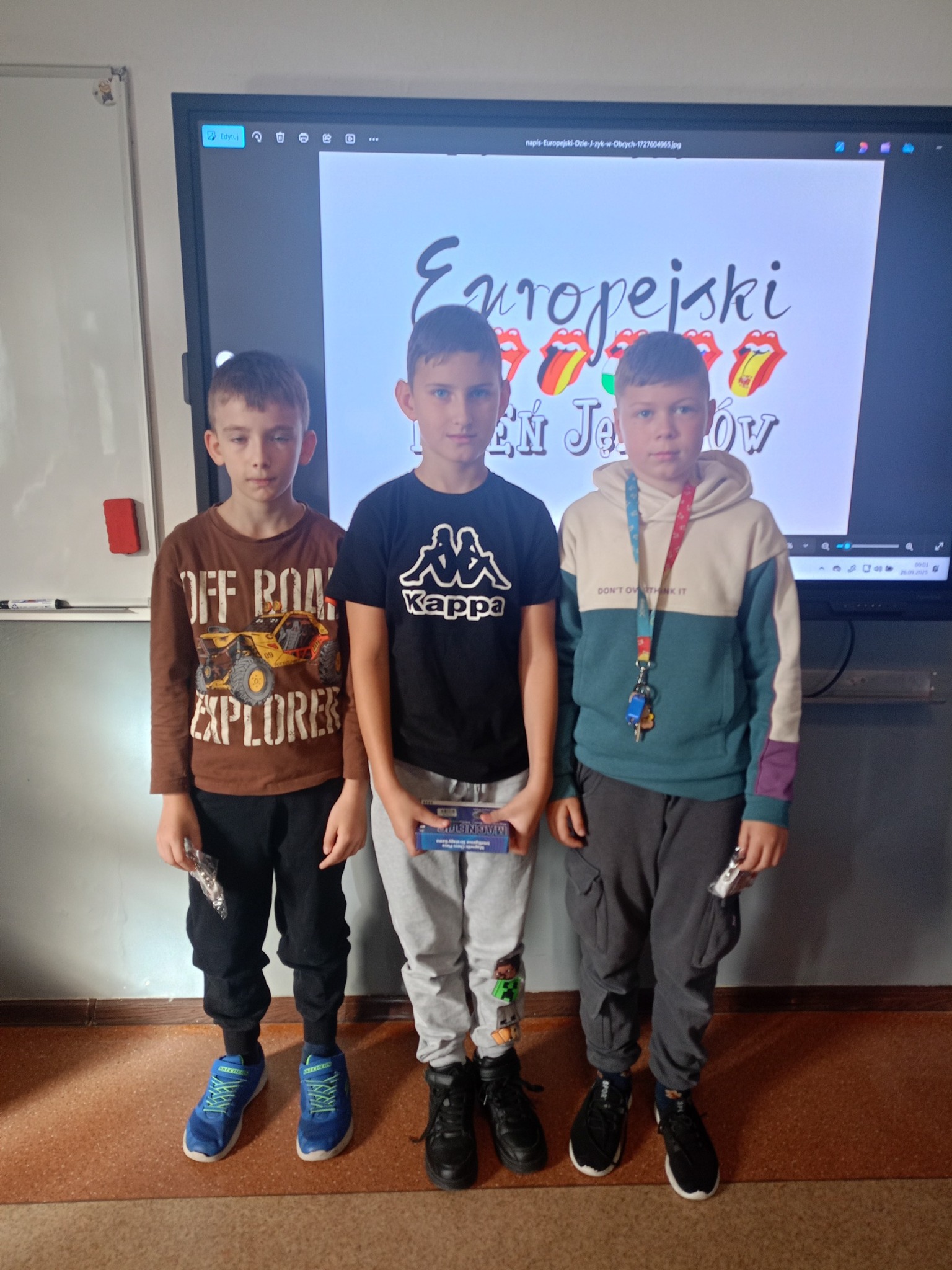 Za nami Europejski Dzień Języków. Uczniowie zmierzyli się z zadaniami ze słownictwa online z wykorzystaniem tablicy multimedialnej. Gratulacje dla zwycięzców konkursu, którzy wykazali się wiedzą i spostrzegawczością.