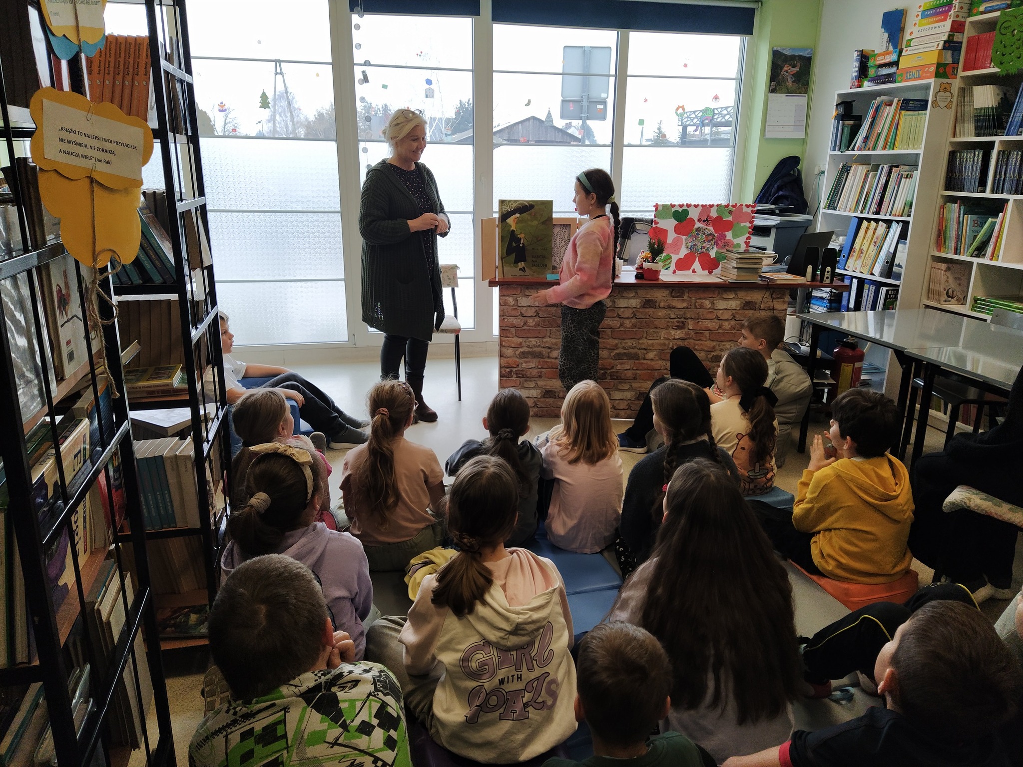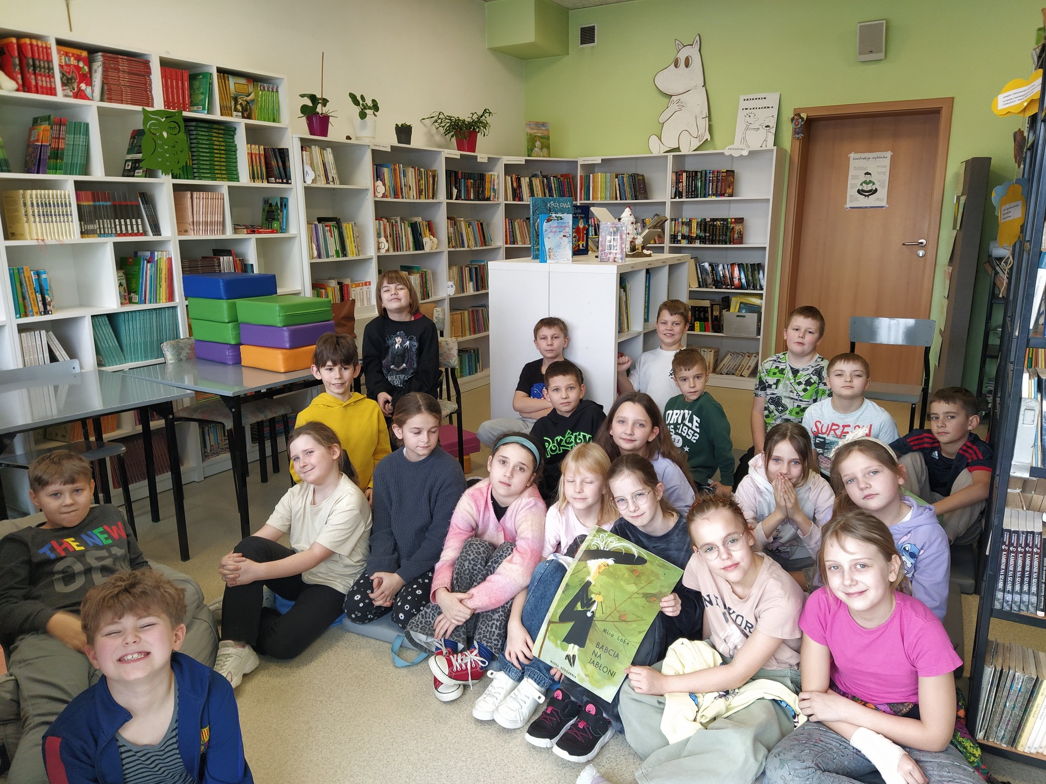 Klasa 3a chętnie przyjęła zaproszenie do biblioteki na lekcję z ciekawą książką. Z uwagą wysłuchaliśmy czytanej przez panią bibliotekarkę opowieści Miry Lobe pt. „Babcia na jabłoni”. W trakcie słuchania kolejny raz zrozumieliśmy jak ważną rolę w życiu dzieci odgrywają babcie i dziadkowie – rozpieszczają, mają dla nas czas, zawsze pocieszą, pomogą i poprawią humor. Była to dla nas bardzo ciekawa i pouczająca lekcja. Dziękujemy za mile spędzony czas wśród książek, w miejscu które bardzo lubimy!
