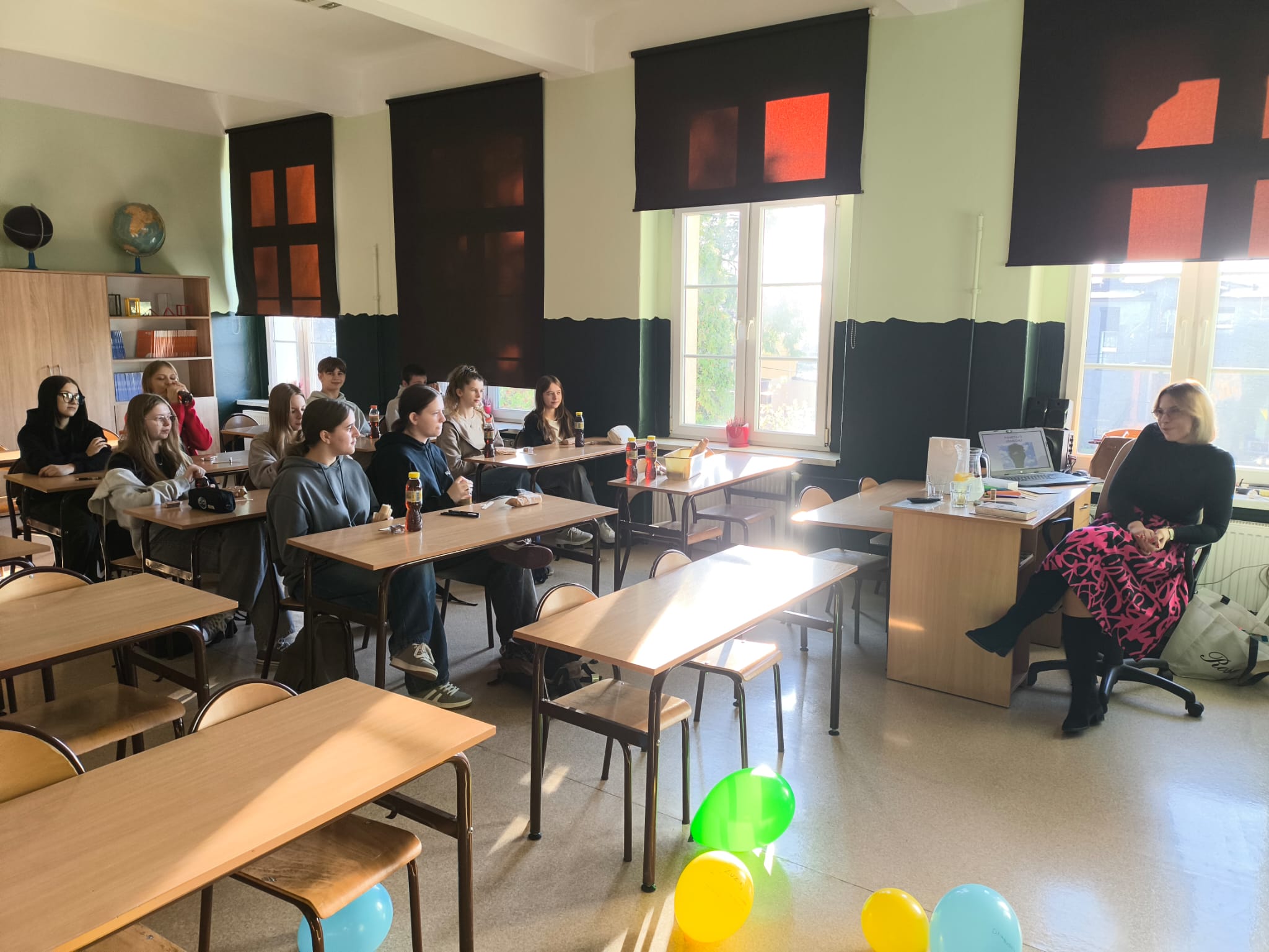 Mieliśmy zaszczyt gościć w progach naszej szkoły niezwykłą osobę - Panią Monikę Sokołowską - dziennikarz radiowy, konferansjer i lektor. Serdecznie dziękujemy za przeprowadzenie inspirujących warsztatów dla młodzieży. Zaangażowanie Pani Moniki, jej pasja oraz profesjonalizm stworzyły wyjątkową przestrzeń rozwoju i twórczego działania. Jesteśmy wdzięczni za poświęcony czas, cierpliwość oraz atmosferę, która sprzyjała otwartości i aktywności.