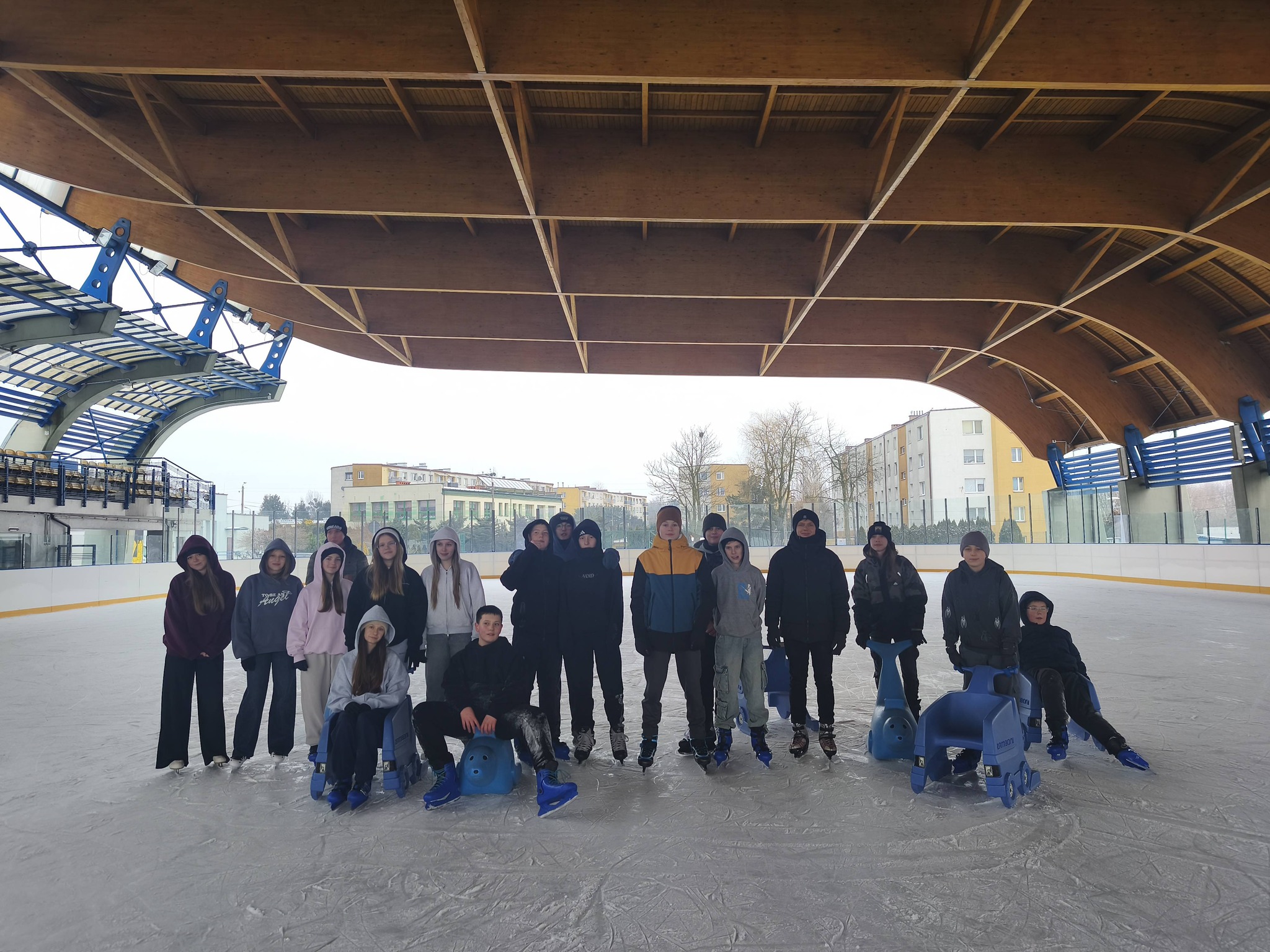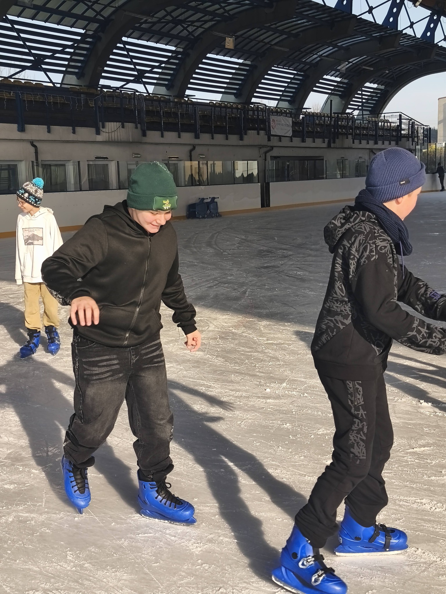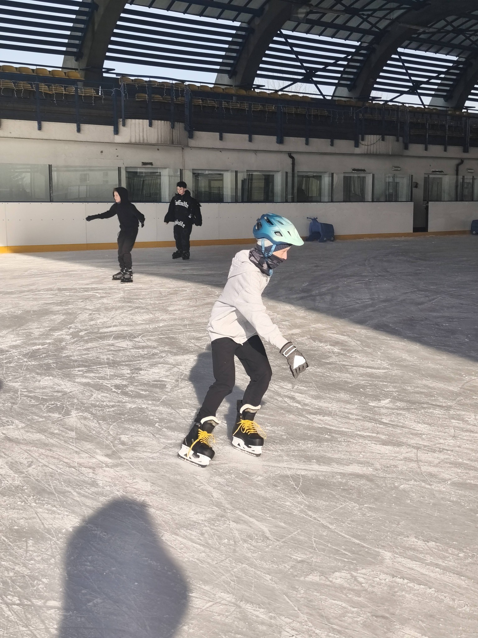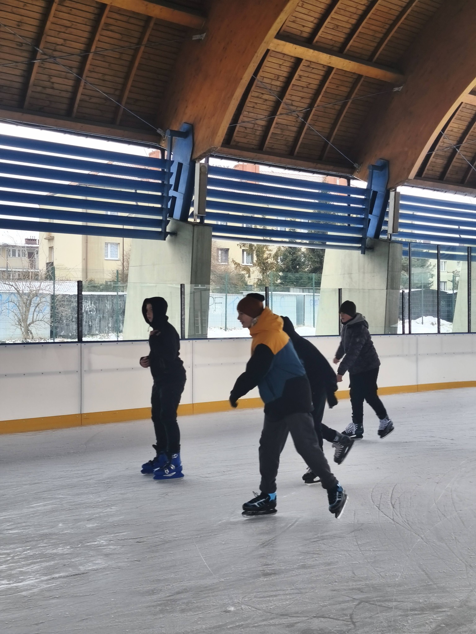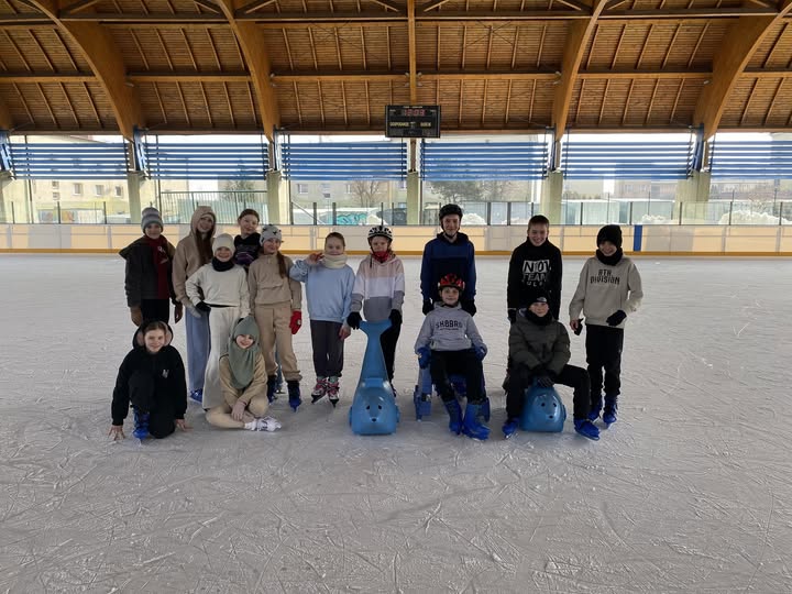 Uczniowie naszej szkoły podczas zajęć wychowania fizycznego szkolili jazdę na łyżwach.