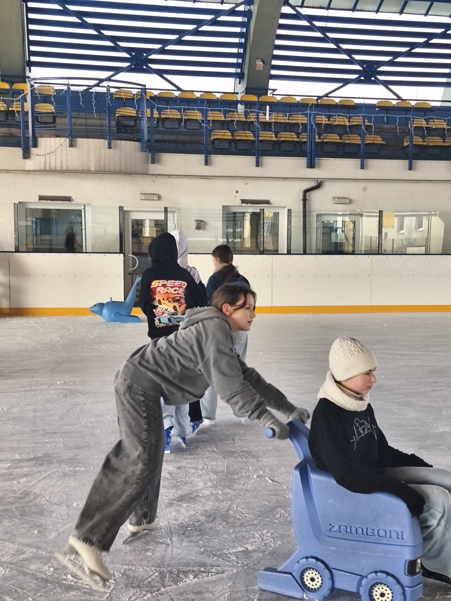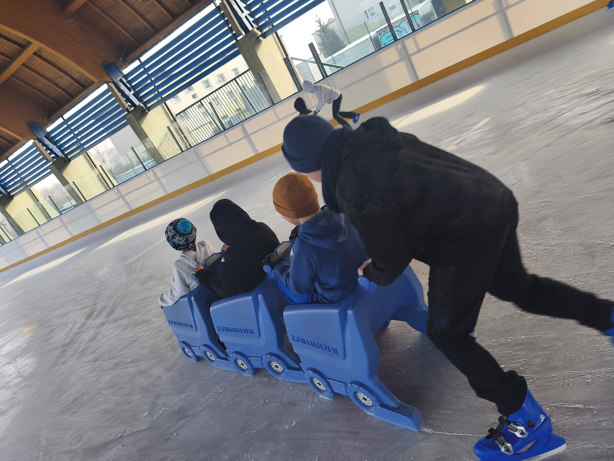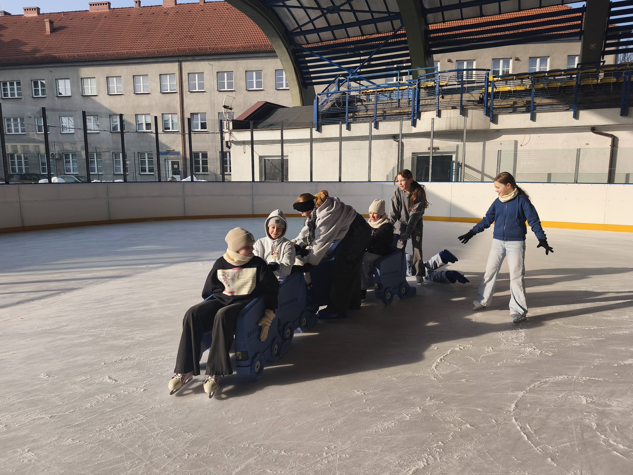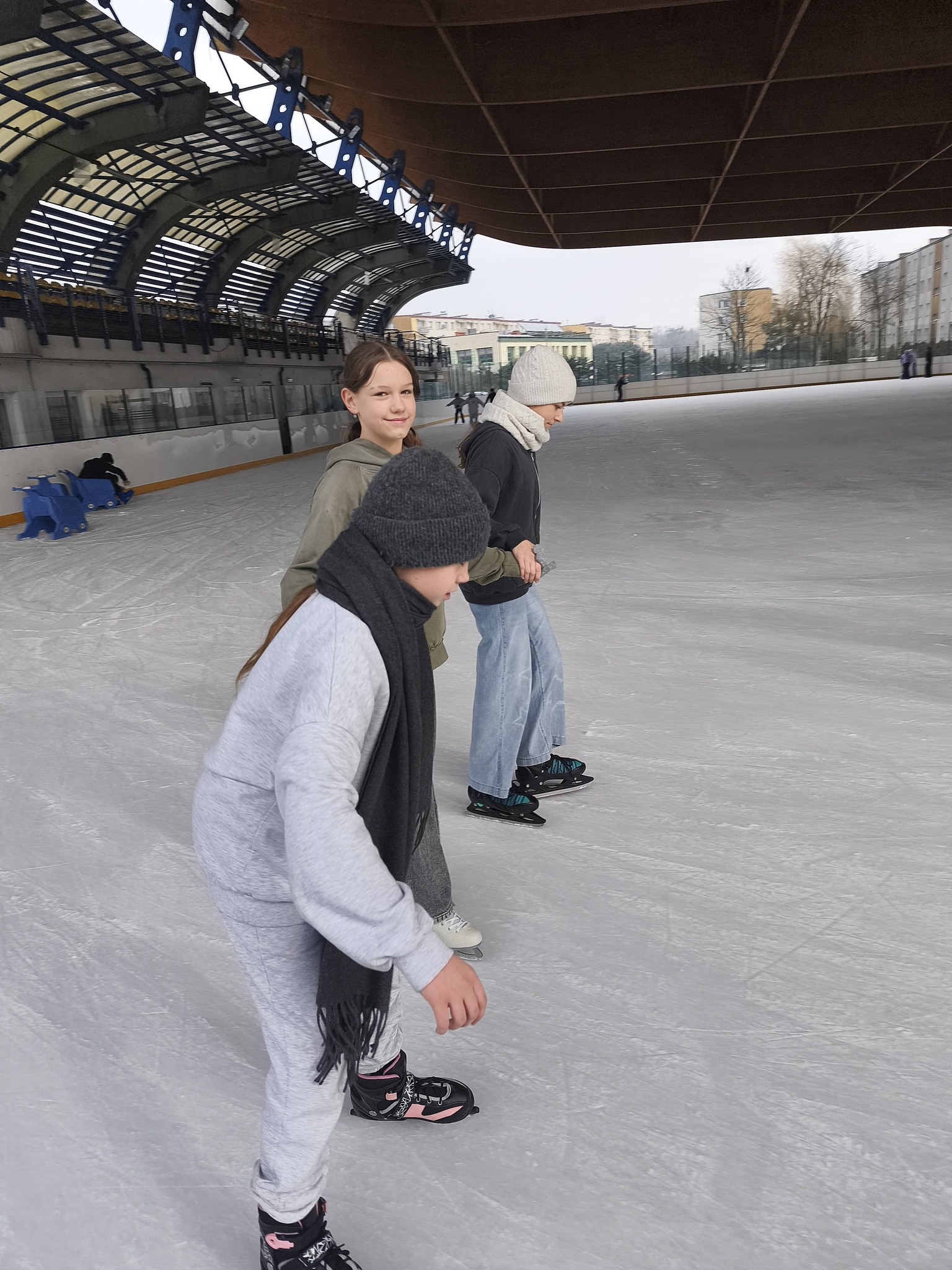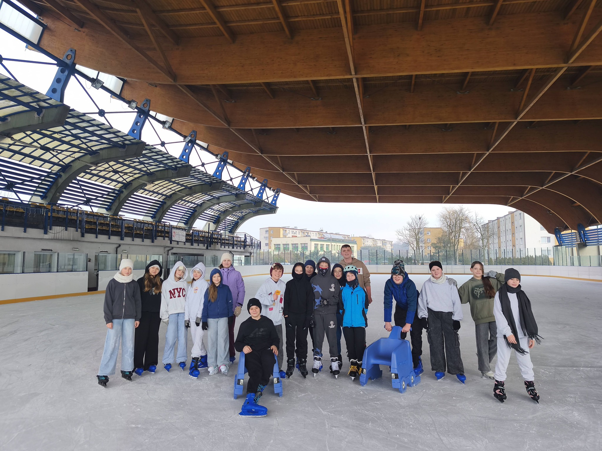 Uczniowie naszej szkoły podczas zajęć wychowania fizycznego szkolili jazdę na łyżwach.